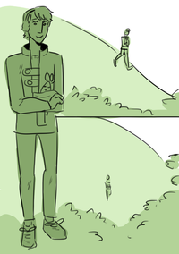 Fin starts the walk back home, mandrake now wrapped up cute and cosy in his arms.