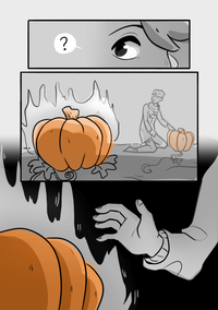 But another of the pumpkins has an ominous aura. Drawn to it, Fin reaches out for it.