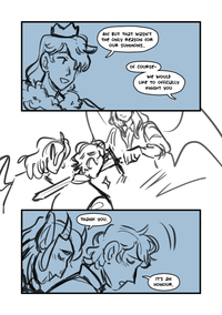 The draconic ruler knights the two, pressing a sword gently to Blue's shoulder.