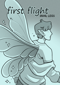 A cover page, showing a fairy boy from behind, his wings acting as a clear focal point. He looks a little surprised.