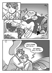 Postie guy has made it down to the source of the fairy-light. It's the changeling boy from earlier! He's still tearful.