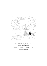 The text reads "Drawn & Written by Alex Lawrence, Edited by Immy Creed. With thanks to LEN and DVNO/Nazareth for beta-reading!"