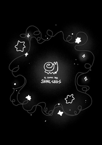 The snail-legs logo in white on a black background, above text reading "a comic by snail-legs". The logo is glowing and surrounded by swirly lines and stars.