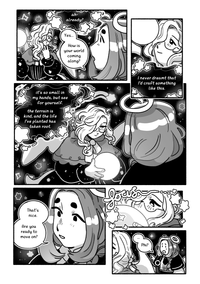 "I never dreamt that I'd craft something like this," Phi says, holding it's world close. "it's so small in my hands, but see for yourself. the terrain is kind, and the life I've planted has taken root."