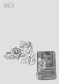 Basil and Fin kiss in front of the pumpkin, now carved. The next panel is of the pumpkin glowing happily outside their front door.