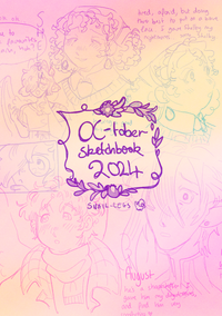 Cover image for my OC-tober sketchbook 2024. It consists of low-opacity sketches from my day 1 pages multiplied over a pastel gradient.